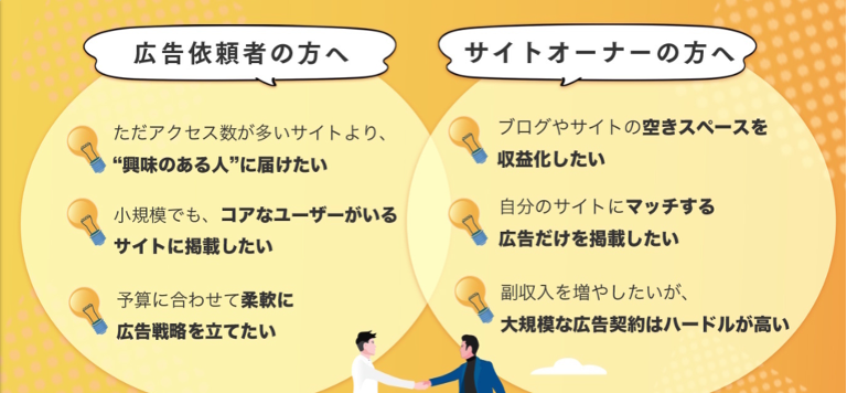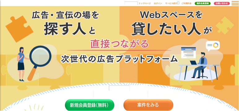 ウェブサイトのスペースを広告・宣伝用に貸して欲しい人と